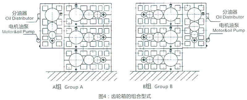 2、本系列齒輪箱適用于多輥壓延機的傳動,選用時必須注明齒輪箱的組合型式和數量。